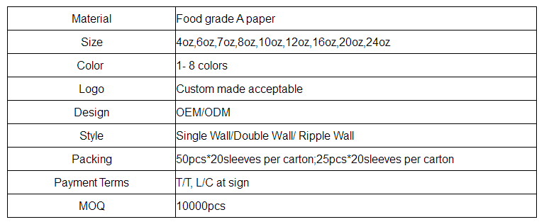 Use:Beverage                        Material:Paper, Food grade A paper